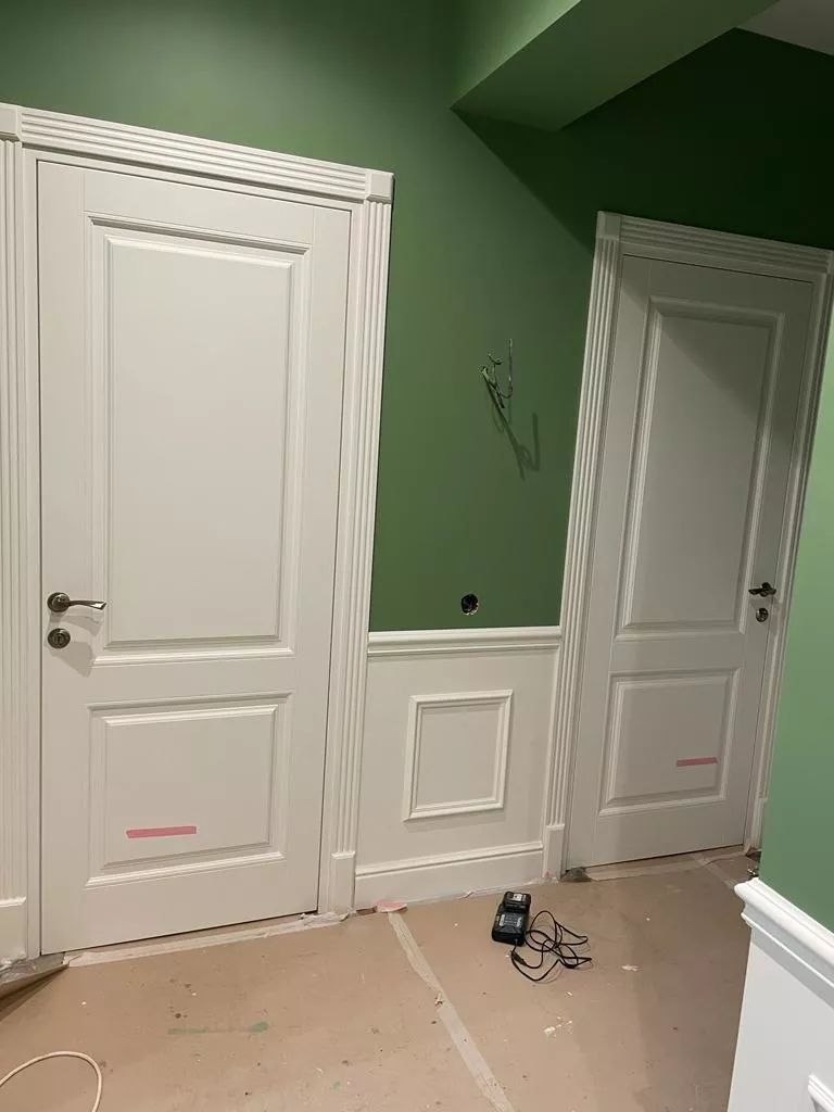 пантографирования, с правильными пропорциями. Два вертикальных руста подчеркивают их красоту. Для полотен под стекло предлагаются различные варианты стекол. Стекла устанавливаются с помощью фигурного штапика. Доступна модель с «английской решеткой». Различные варианты окрашивания делают двери важным элементом в интерьере, а при желании – акцентом.